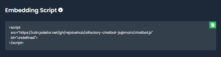 Copy the provided embedding script. It should look similar to the following: