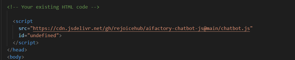 Open the HTML file of the webpage where you want to integrate Chatbot